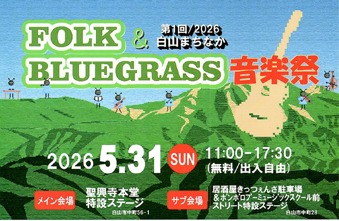• 第1回 2026 白山まちなか FOLK & BLUEGRASS 音楽祭