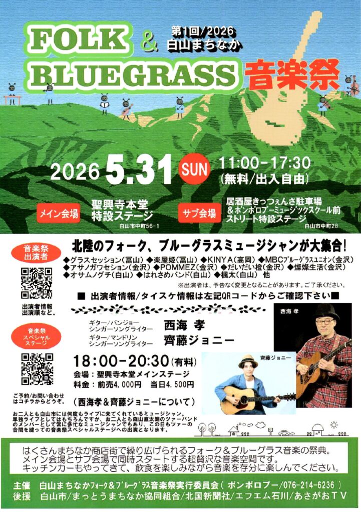 第1回 / 2026 白山まちなか FOLK & BLUEGRASS 音楽祭